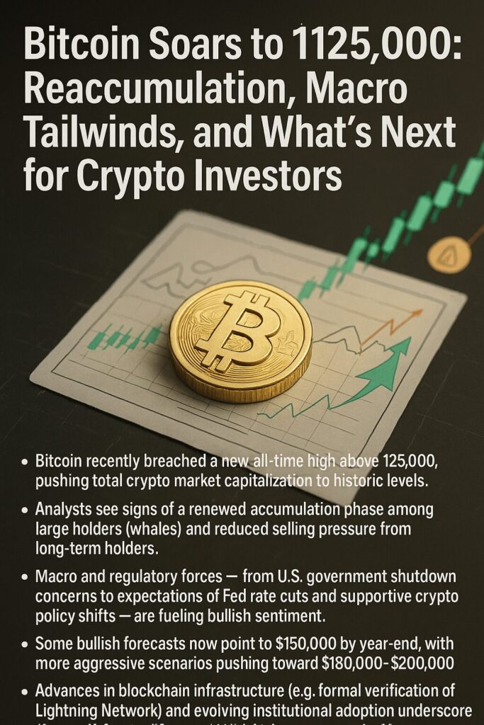 Bitcoin’s climb above $125,000 marks an emphatic moment in crypto history. But more than the price milestone, the dynamics behind the move — reaccumulation by large holders, macro tailwinds, regulatory advances, and underlying infrastructure improvements — paint a richer narrative of maturation.