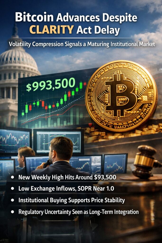 <Market Analysis>  Bitcoin Advances Despite CLARITY Act Delay: Volatility Compression Signals a Maturing Institutional Market