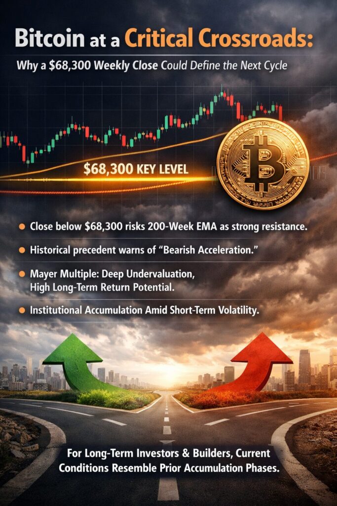 - $68,300 is the decisive weekly level — a close below this zone risks turning the 200-week EMA into firm resistance.