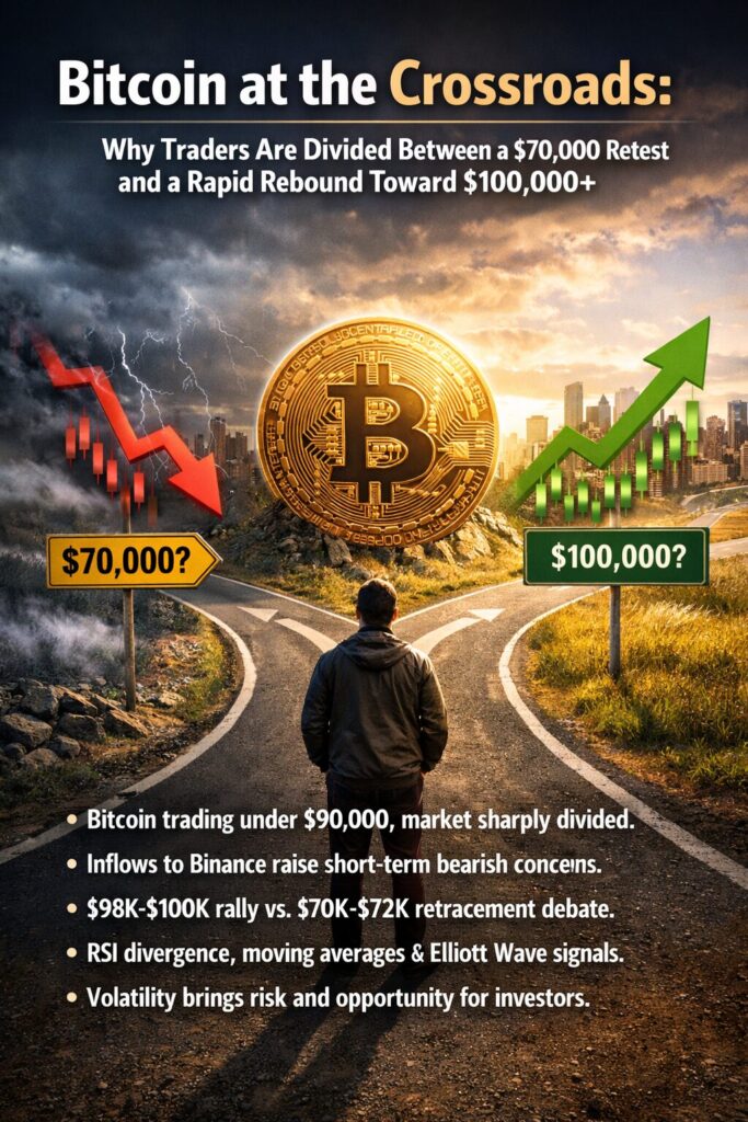 - Bitcoin is trading below $90,000, with market participants sharply divided on its short-term direction.