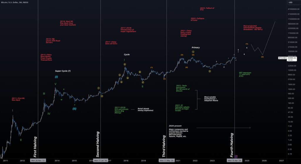 Another bullish scenario comes from Korinek Trades, who applies Elliott Wave Theory to Bitcoin’s macro structure.