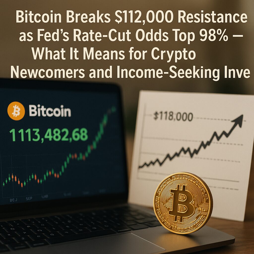 <Market Analysis>  Bitcoin Breaks $112,000 Resistance as Fed’s Rate-Cut Odds Top 98% — What It Means for Crypto Newcomers and Income-Seeking Investors
