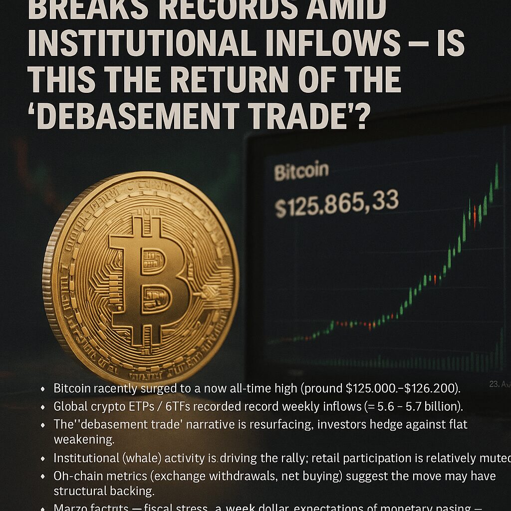 This powerful combination — a price breakout synchronized with capital inflows — revives the “debasement trade” thesis: that investors are repositioning into hard assets (like Bitcoin or gold) as fiat currencies face structural pressure.