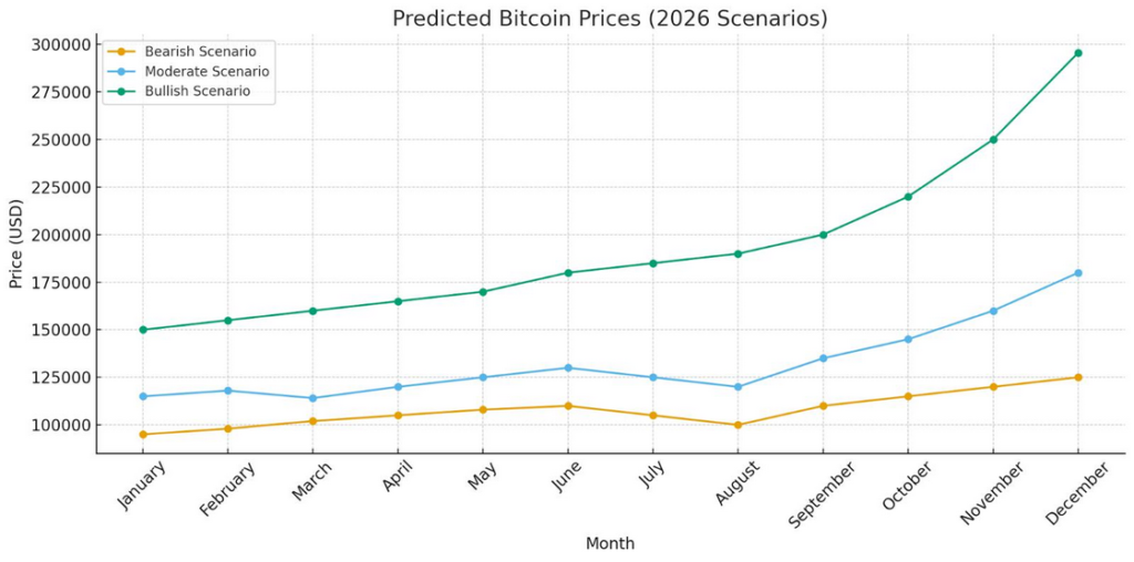 (Recommended: Bitcoin price scenario projection chart showing bullish vs bearish paths)Insert Figure 2 Here