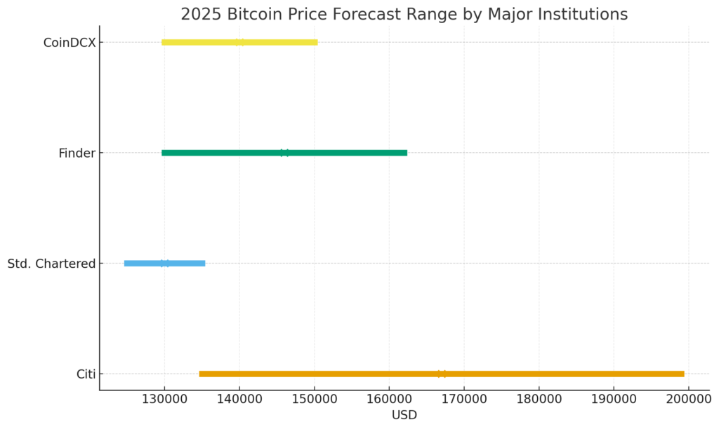 Bullish forecasts range broadly, from $130,000 to $160,000 in 2025, with some bold voices even floating six-figure or multi-hundred thousand dollar goals. Yet the path to those targets is far from linear — corrections of 20 % or more are very possible, and failure to sustain support levels could lead to deeper retracements.
