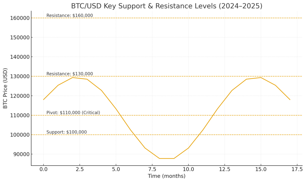 Historically, support zones around $100,000–$110,000 remain important. Should Bitcoin fall back below those, it may reenter a consolidation phase or face stronger corrections.