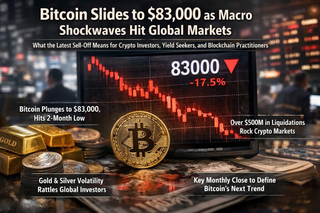 <Market Analysis>  Bitcoin Slides to $83,000 as Macro Shockwaves Hit Global Markets What the Latest Sell-Off Means for Crypto Investors, Yield Seekers, and Blockchain Practitioners