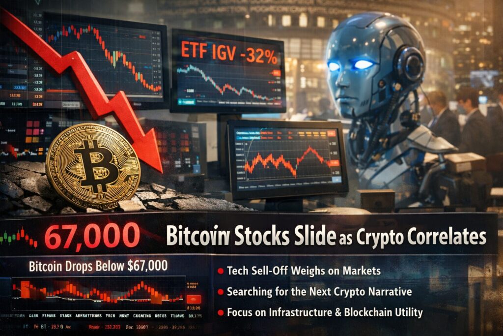 Bitcoin’s concurrent weakness suggests that crypto remains embedded in the broader “growth asset” category. When investors de-risk from AI and software equities, digital assets are often sold alongside them.