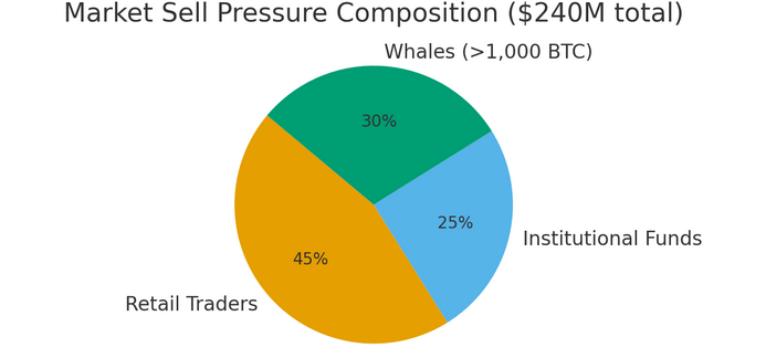 Order-book and on-chain data show concentrated selling by large stakeholders (“whales”) around the $104 k region. This aligns with commentary that the local high was targeted by those exiting positions rather than initiating fresh long exposure.