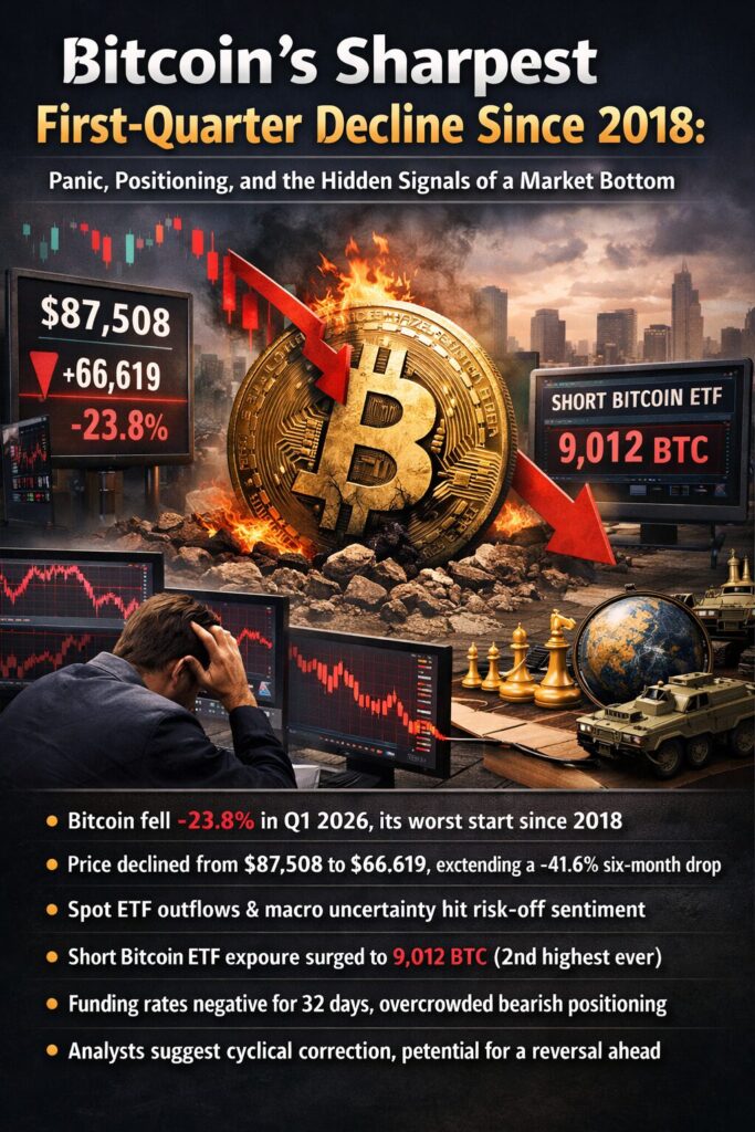 Bitcoin’s steep decline in Q1 2026 reflects a confluence of macroeconomic pressure, geopolitical instability, and shifting institutional flows. On the surface, the data paints a bearish picture: falling prices, ETF outflows, and rising short positions.