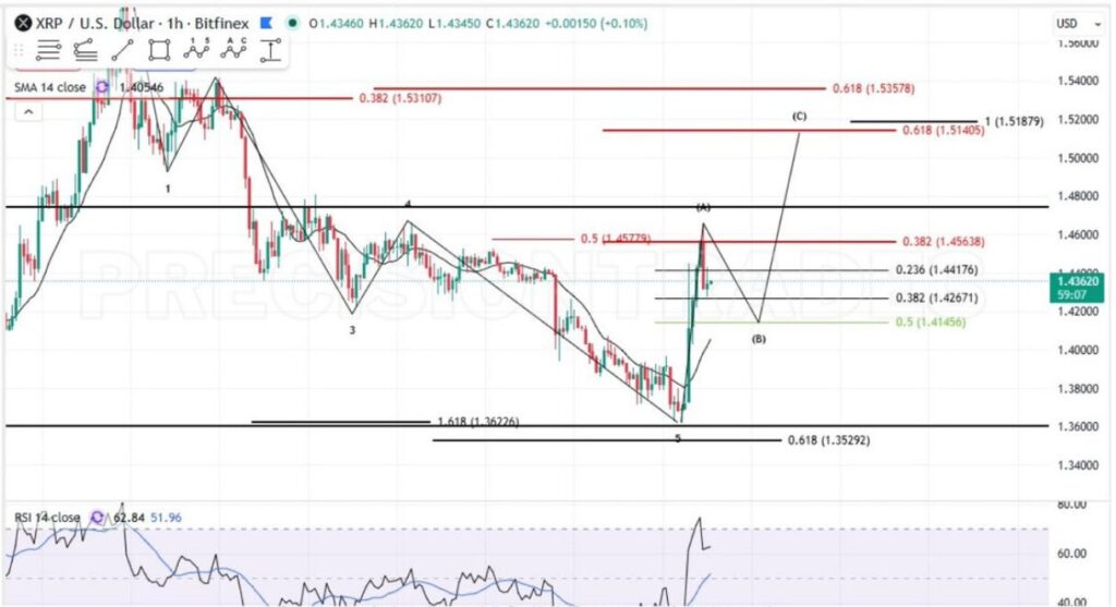 If XRP manages to break above the moving averages and sustain that level, the price could climb toward $1.61, which represents a key breakdown level. Beyond that, the descending trendline becomes the critical barrier.