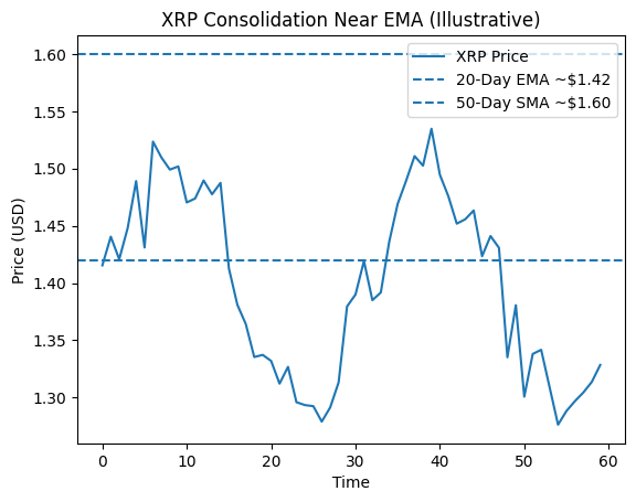 XRP has been trading close to its 20-day EMA around $1.42, suggesting that bullish pressure remains intact.