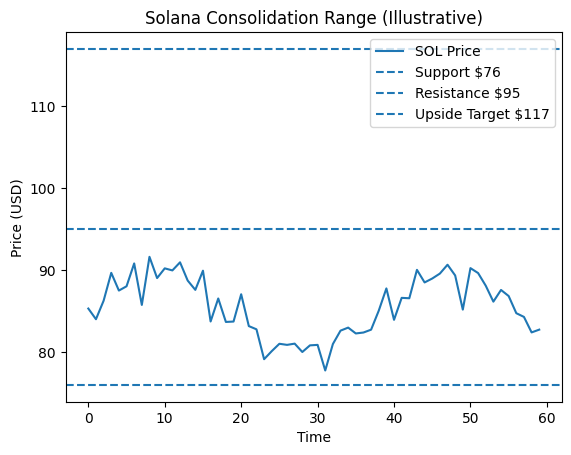 SOL chart highlighting the $76–$95 range and potential breakout target.
