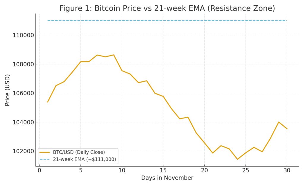 • Despite the price surge, key resistance around roughly $112,000 (including the 21-week Exponential Moving Average (EMA)) remains unbroken, raising concern among traders about sustainability.