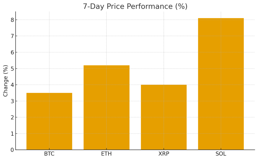 While the large-cap players are in focus, interesting signals are emerging in altcoins and ecosystems. For instance, SOL’s performance (7-day +8%) versus XRP’s (~+4%) underscores divergence.