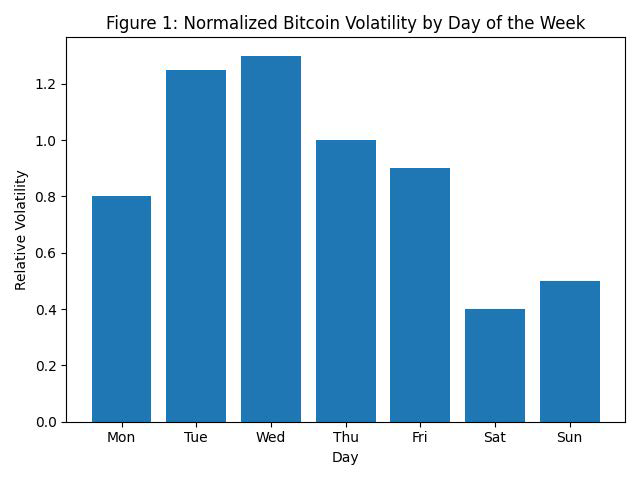 This chart illustrates how relative volatility peaks mid-week and collapses over the weekend, especially on Saturdays.