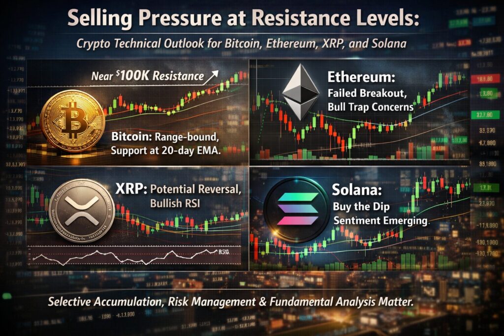 The current technical landscape for Bitcoin, Ethereum, XRP, and Solana points to a market that is pausing, not collapsing. Resistance levels are doing their job, but support zones remain intact.