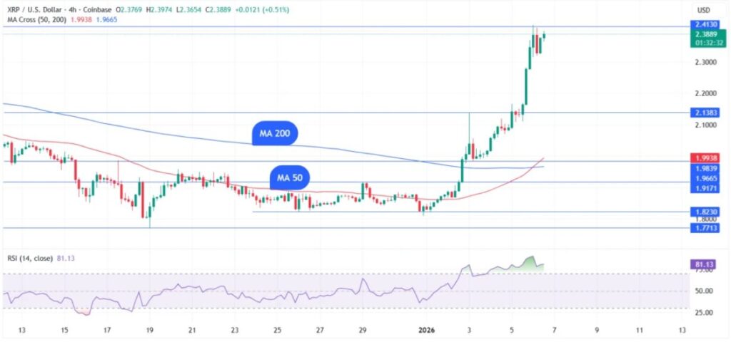 The moving averages are close to forming a bullish crossover, and the Relative Strength Index (RSI) is holding in positive territory. If buyers manage to push XRP above the downtrend line and secure a daily close, it would suggest a short-term trend reversal. In that case, XRP could rally toward $2.70.