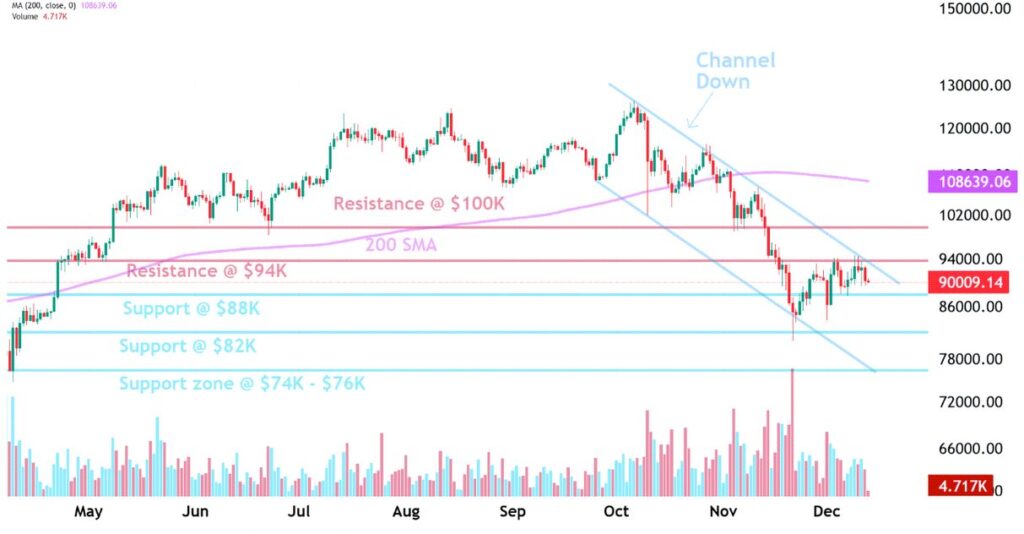 Under such conditions, Bitcoin may trade between $84,000 and $94,589 for an extended period, frustrating both bulls and bears while volatility compresses.