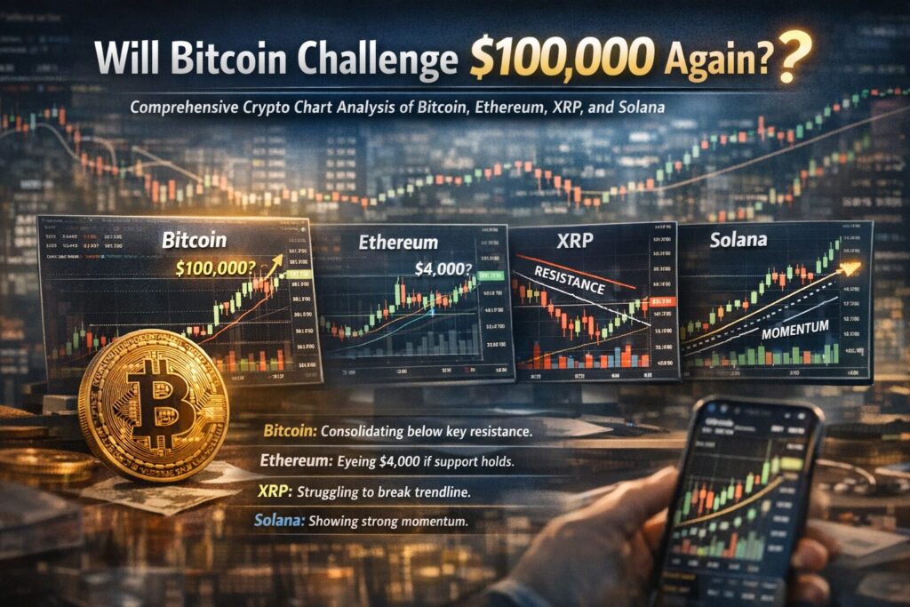The cryptocurrency market has entered a phase of heightened tension. After months of bullish momentum fueled by ETF inflows, institutional accumulation, and macro liquidity expectations, major crypto assets are now facing technically decisive levels. Bitcoin’s repeated approach toward the psychologically significant $100,000 mark has reignited investor interest, while altcoins such as Ethereum, XRP, and Solana present divergent technical structures that reflect broader capital rotation within the market.