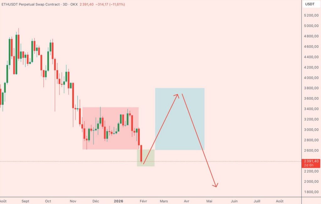 From a technical perspective, Bitcoin broke below its 50-week moving average after forming a rising wedge pattern, traditionally viewed as a bearish signal. Analysts now identify $78,000 as the next critical support level. A failure to hold this range could open the door to declines toward the mid-$70,000s or even $60,000 under extreme conditions.