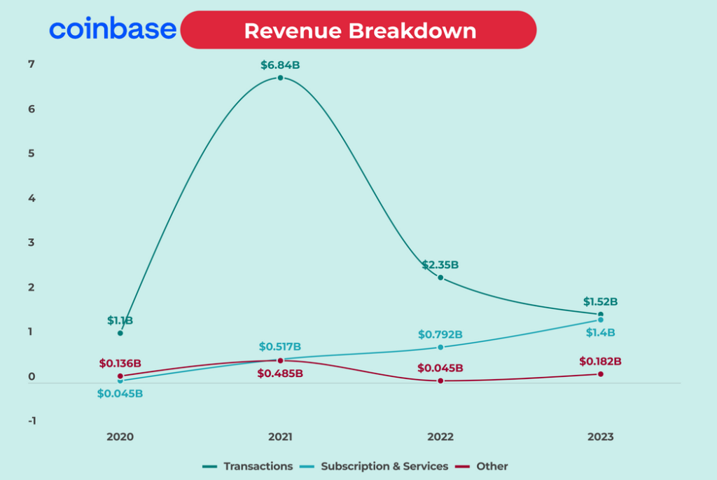 [Coinbase Revenue Composition and Stock Performance (USD)]