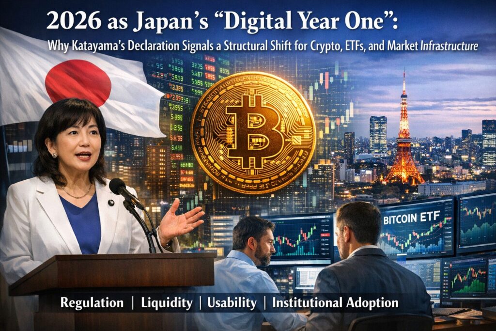 - Japan’s Finance Minister Satsuki Katayama publicly framed 2026 as “Digital Year One”, signaling a policy-level shift rather than a symbolic slogan.