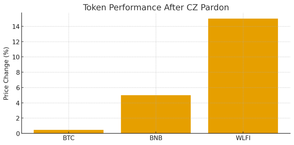 The regulatory news triggered immediate market responses. Binance’s native token BNB climbed roughly 5 %–8 % in the 24 hours following the announcement. Similarly, WLFI — the token associated with the Trump-affiliated entity World Liberty Financial — surged about 15 % on the day.