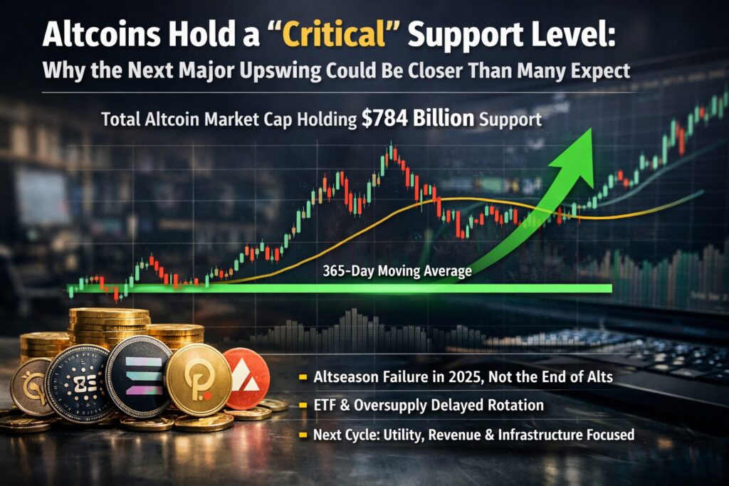 Holding above critical support levels near $784 billion, TOTAL3 suggests that the market is consolidating rather than collapsing. The absence of a 2025 altseason reflects structural transformation, not terminal decline.
