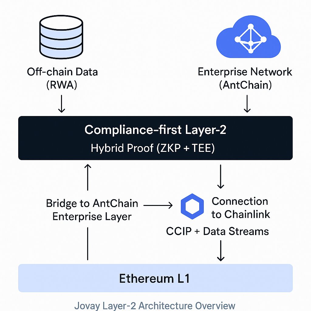 • Jovay integrates with Chainlink (CCIP and Data Streams) for cross-chain and market data, reinforcing interoperability.