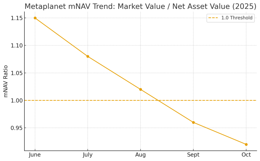 One notable example: the Japanese company Metaplanet Inc. had its enterprise-value indicator mNAV fall below 1 (i.e., market value < net asset value) to around 0.92, tracking the correction.