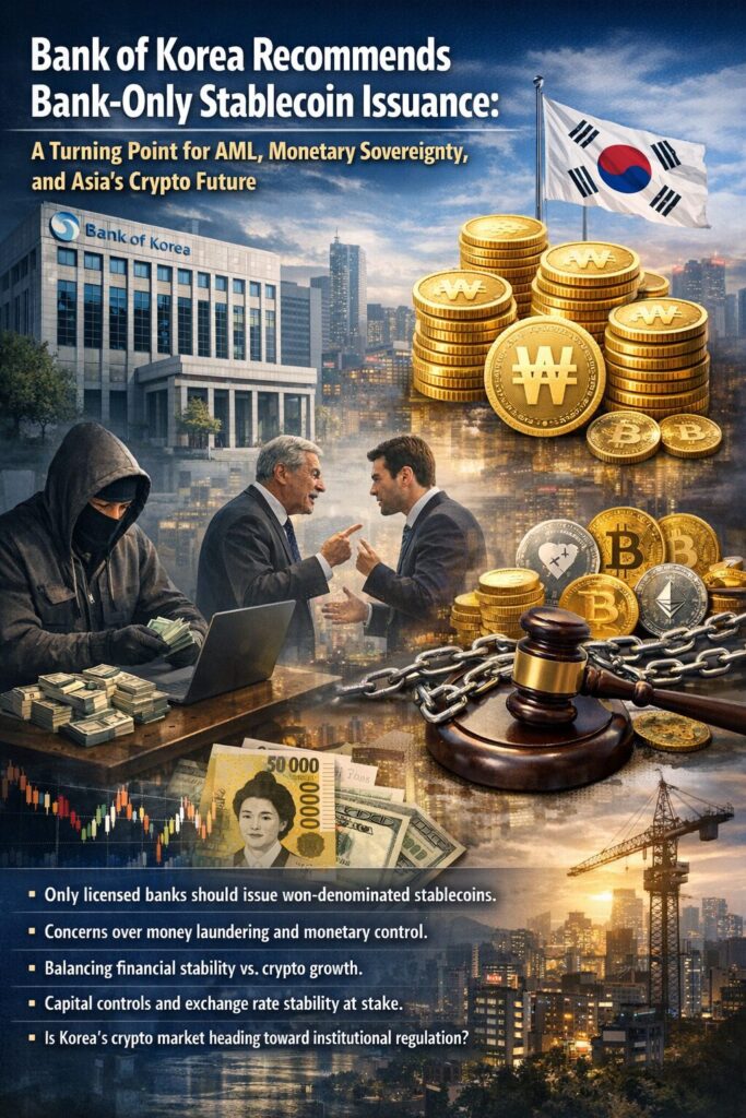 On February 23, 2026, the Bank of Korea (BOK) submitted a formal recommendation to members of the National Assembly urging that Korean won–denominated stablecoins be issued exclusively by licensed commercial banks. The proposal is not merely a technical regulatory adjustment. It represents a defining moment in the global debate over how digital currencies should coexist with sovereign monetary systems.