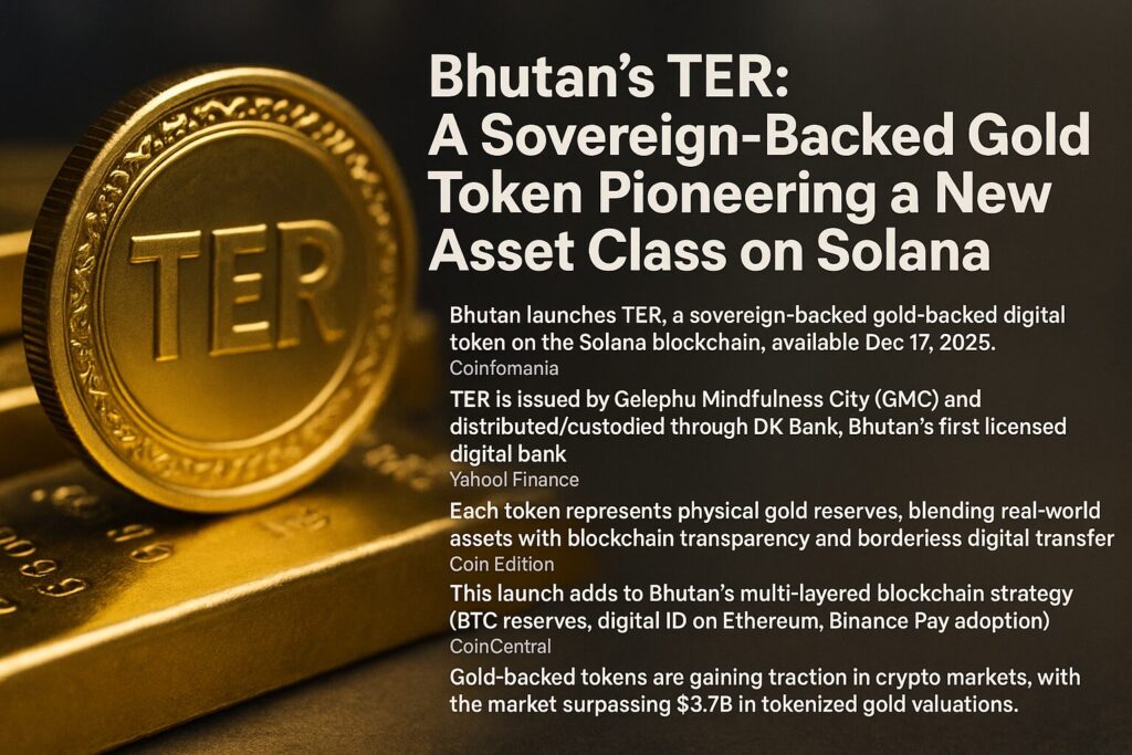 In a landmark move for national digital finance, the Kingdom of Bhutan is set to launch TER, a gold-backed digital token on the Solana blockchain, scheduled for public rollout on December 17, 2025. This initiative places Bhutan among a small number of countries experimenting with sovereign-supported digital assets that represent real physical reserves on-chain.