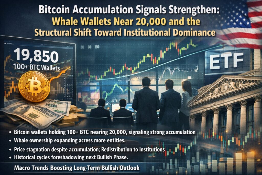 The Bitcoin market has quietly reached one of its most significant structural milestones in recent years: the number of wallets holding at least 100 BTC—commonly referred to as “whale wallets”—has now exceeded 20,000.