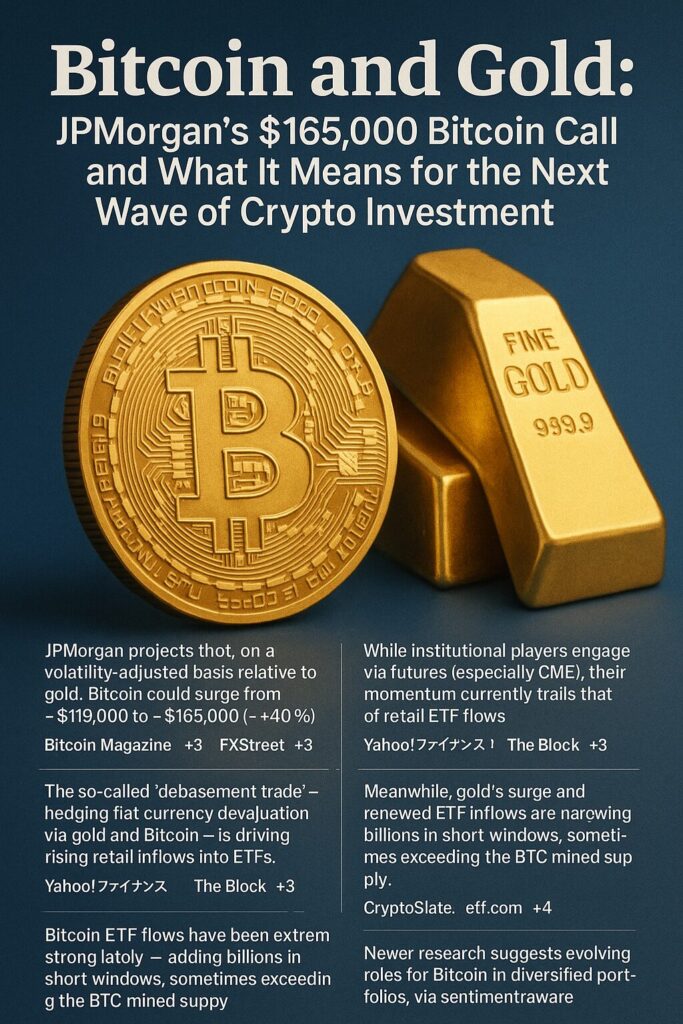 JPMorgan’s call that Bitcoin could reach ~$165,000 by year-end — on a volatility-adjusted comparison to gold — is bold and anchored in a clear narrative: Bitcoin remains undervalued versus gold, and the “debasement trade” could continue fueling inflows. But the path isn’t guaranteed.