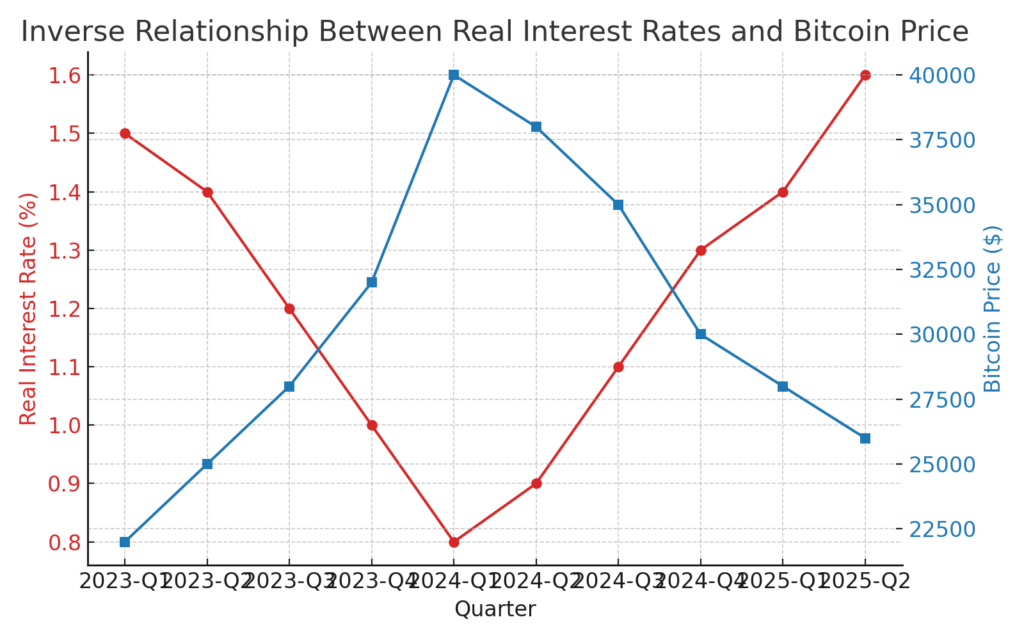 - Real interest rates (interest rates adjusted for inflation) — when real rates fall, both gold and Bitcoin tend to benefit progressively.