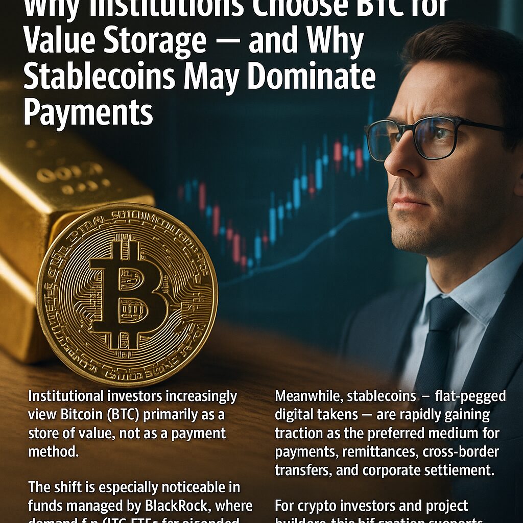 - For crypto investors and project builders, this bifurcation suggests different opportunities: long-term value plays with BTC, and payments/DeFi/treasury-oriented use cases with stablecoins.