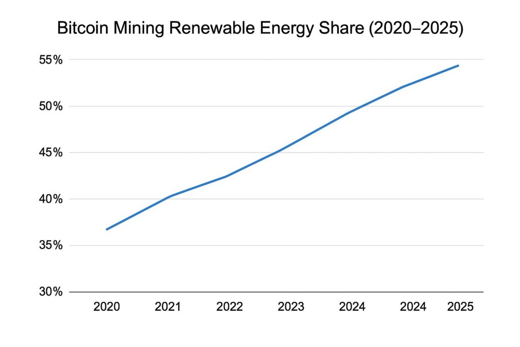 According to recent analyses, Bitcoin mining’s clean energy share has reportedly exceeded 50%, reaching ~52.4% in some reports, up from ~37.6% in 2022.