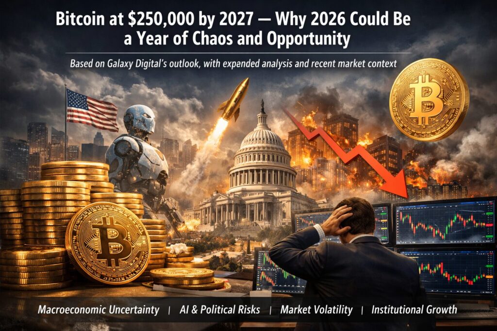 Galaxy Digital’s research team has once again drawn global attention by presenting a strikingly bullish long-term forecast for Bitcoin. According to Galaxy Digital, Bitcoin could reach $250,000 by the end of 2027, even as the firm cautions that 2026 may be a year defined by confusion, sharp reversals, and conflicting signals.