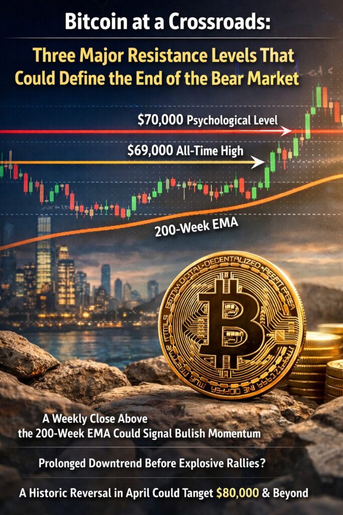 Bitcoin stands at a decisive inflection point. The convergence of the 200-week EMA, the $69,000 prior high, and the $70,000 psychological level forms a macro resistance wall that could determine whether the bear market truly ends.