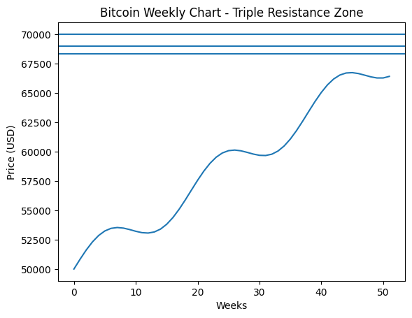 - Bitcoin is simultaneously confronting three major resistance levels: the 200-week EMA, the 2021 all-time high near $69,000, and the psychological $70,000 level.