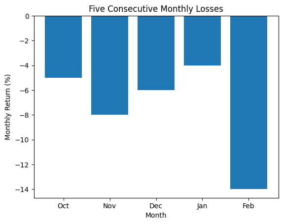 III. Five Consecutive Monthly Losses: A Rare Bearish Sequence
