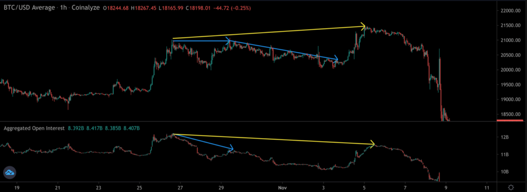 BTC Price vs. Open Interest (illustrating rising open interest during the pullback).