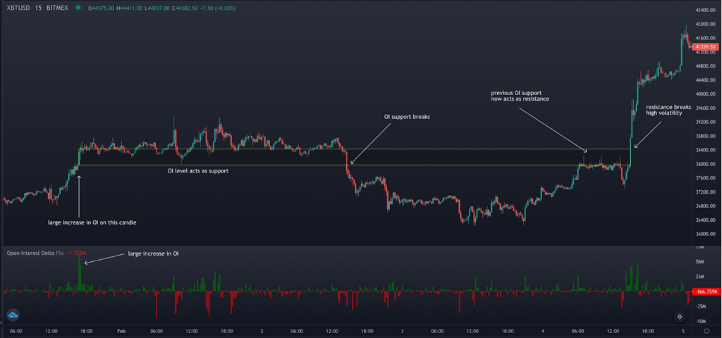 - Rising open interest alongside price strength