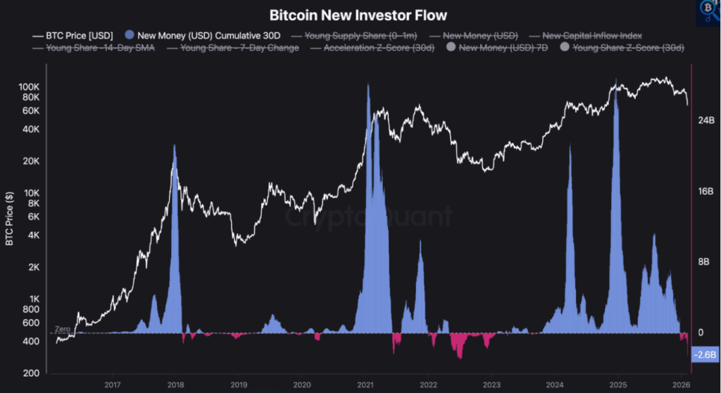 In past bull markets, pullbacks attracted fresh capital. The absence of meaningful inflows below $70,000 suggests capital rotation or risk aversion.