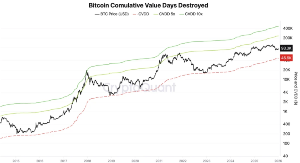 - The CVDD (Cumulative Value Days Destroyed) model suggests a structural support floor