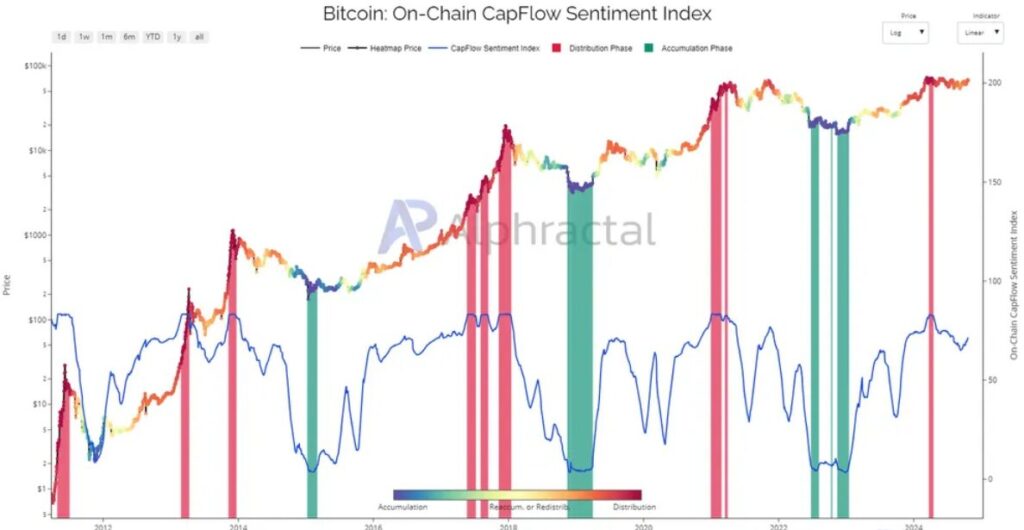 This divergence—price holding steady while capital weakens—is historically dangerous.