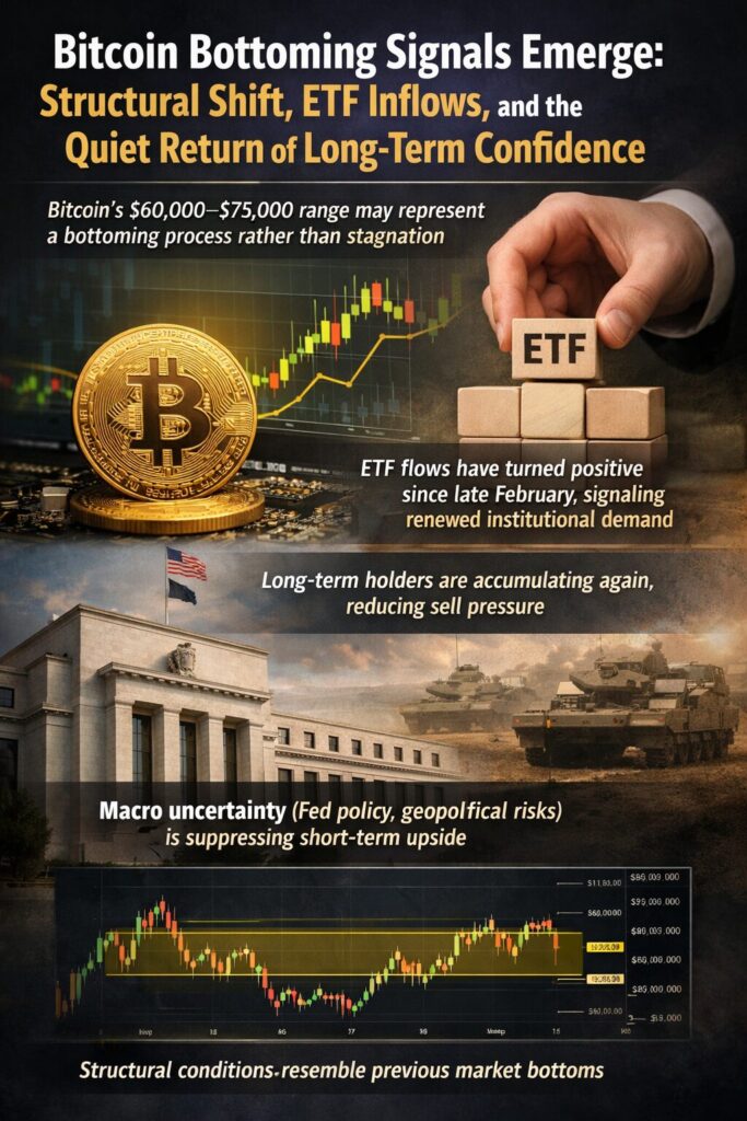 - Bitcoin’s $60,000–$75,000 range may represent a bottoming process rather than stagnation