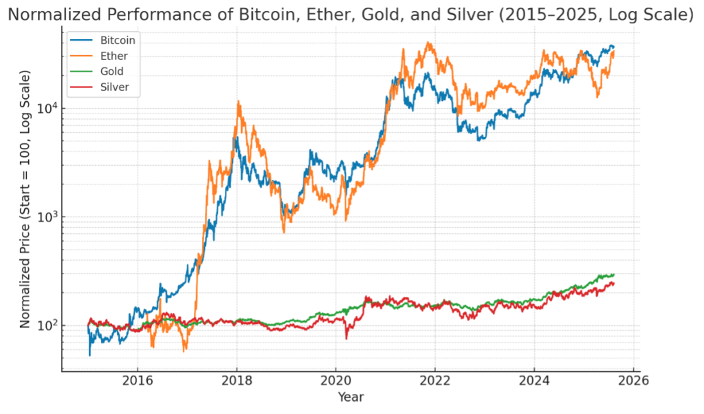 - Macro convergence: Bitcoin increasingly trades alongside hard assets and energy-intensive technologies.