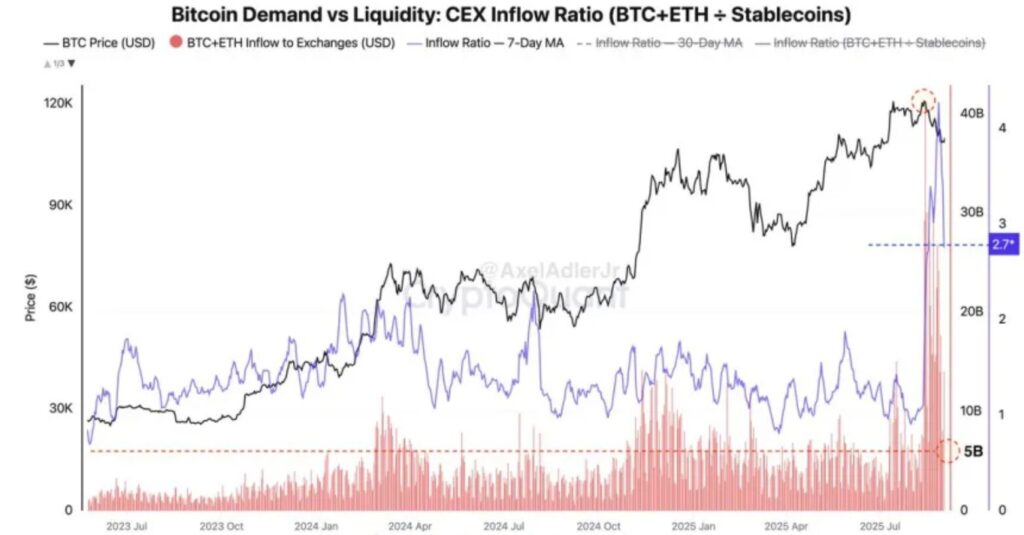 Importantly, the spike in exchange inflows comes as institutional investors have been pulling funds out of crypto. According to a recent report, digital-asset funds saw US$1.94 billion in outflows last week alone — among the largest runs since 2018.